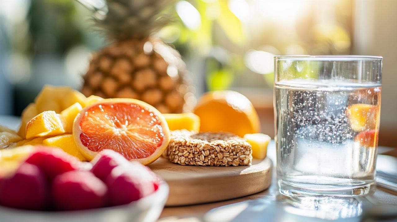 L'intégration pratique des fibres dans l'alimentation quotidienne ne nécessite pas de bouleversement radical des habitudes. Il suffit d'ajouter un fruit ou un légume à chaque repas, de remplacer progressivement les produits raffinés par des produits complets comme le pain complet ou les biscottes complètes, et de boire de l'eau avant de manger pour favoriser l'effet rassasiant des fibres. Un petit-déjeuner composé de 40 grammes de flocons d'avoine, d'un yaourt grec et d'une pomme offre un excellent départ pour la journée avec un apport équilibré en fibres et protéines. Pour le déjeuner, une salade de lentilles avec 120 grammes de poulet et des légumes crus constitue un repas complet et rassasiant. Le dîner peut inclure une soupe de légumes maison accompagnée de 150 grammes de pommes de terre vapeur et de légumes verts. Quant aux collations, une orange ou une poignée de 30 grammes de pois chiches grillés permettent de patienter entre les repas sans compromettre les objectifs de gestion du poids. Cette approche progressive et variée garantit non seulement une meilleure adhésion au long terme, mais aussi une alimentation équilibrée qui favorise le bien-être global et l'hydratation optimale de l'organisme.